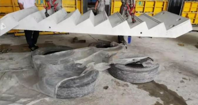 在预制楼梯成型及楼梯起吊、堆放时,此时则凸显了两种模具的最/大不同点了。